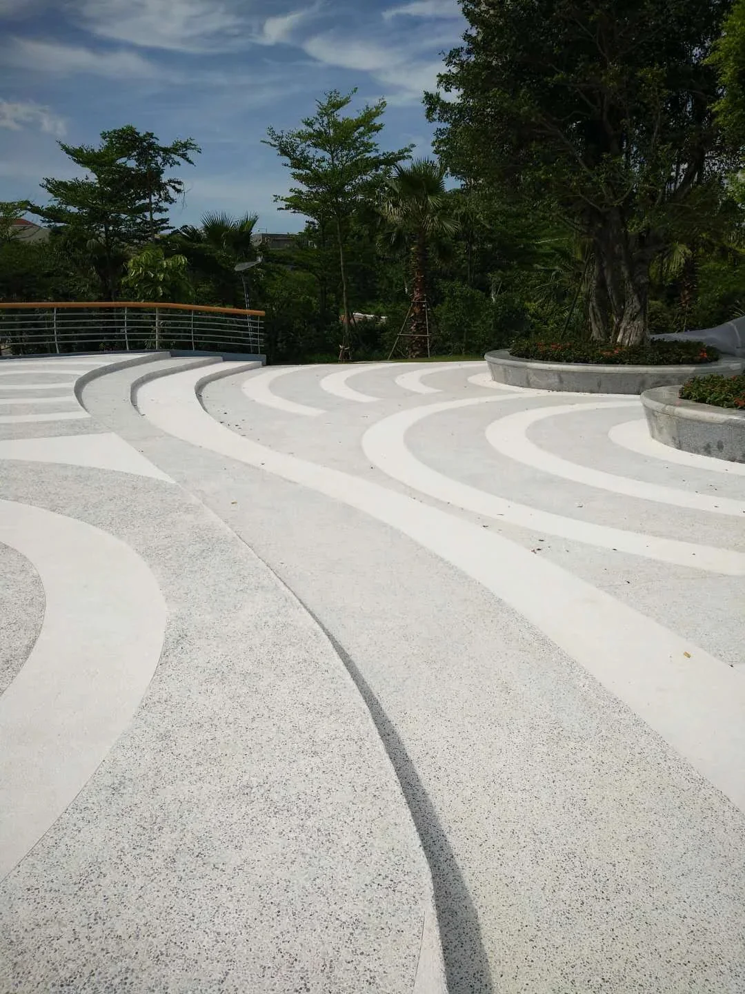 水洗石路面具有耐磨、可塑性強(qiáng)、耐腐蝕等優(yōu)點(diǎn),是各種公共空間中式道路材料的首選。其原材料具有各種顏色和形狀,因此水洗后的石材也可以裝飾成各種形狀和圖案,廣泛應(yīng)用于室內(nèi)裝飾和室外景觀造型,透出自然純樸的感覺。